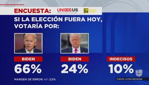 El síndrome de la locura por Trump alcanzó nuevos niveles en las noticias de Univisión donde los presentadores hostigaron a los televidentes con informes colusorios sobre una encuesta pro-Biden publicada por Latino Decisions, y que incluso ilustraron con una foto en pantalla del presidente Donald Trump identificada como ... ¡Joe Biden!