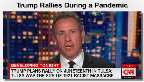 The news media are up in arms about President Trump’s planned rally in Tulsa, Oklahoma, arguing it would be “extremely dangerous” to hold a large gathering in the midst of a pandemic. However, some of us are old enough to remember when the same outlets were celebrating the Black Lives Matter protests, arguing that they were necessary and worth the risk.