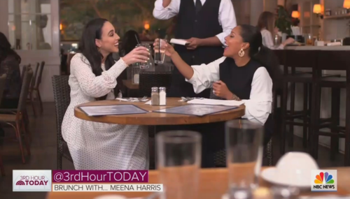 Launching a new interview series called Brunch With, on Wednesday’s 3rd Hour Today show, co-host Sheinelle Jones sat down for a meal with liberal activist Meena Harris, who just so happens to be the niece of California Senator and Democratic presidential candidate Kamala Harris. Jones gushed that “activism is practically genetic” for her brunch pal.