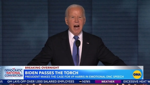 Tuesday on ABC’s Good Morning America, co-host and former Clinton official George Stephanopoulos tag-teamed with chief White House correspondent and unofficial Biden-Harris official Mary Bruce showed they understood the assignment in fawning over the Democratic National Convention. In this case, it was hailing President Biden’s speech “passing the torch to Vice President Kamala Harris…