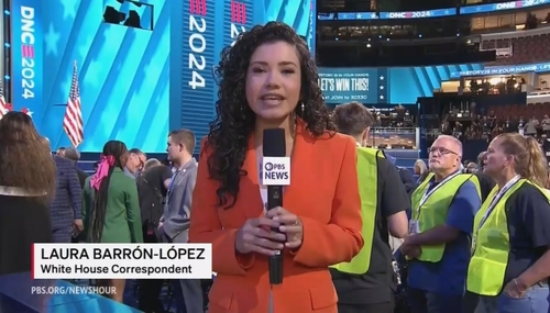 While covering Night One of the Democratic convention from Chicago, PBS News Hour reporter Laura Barron-Lopez was as energized as a Democratic delegate (or PBS’s introductory voiceover to its coverage), gushing over a “Kamala Cake” featured by a local bakery and relaying the “palpable enthusiasm” from the convention floor. Barron-Lopez, who usually covers the White House, was quite…