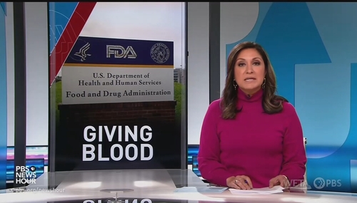 On Friday's PBS NewsHour, the show promoted another liberal pet cause as a segment was devoted to the efforts of gay activists who are demanding to have their blood accepted for blood transfusions.
