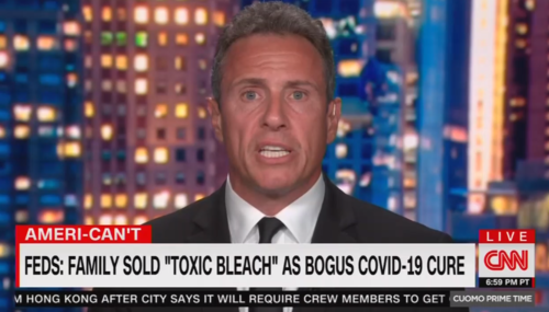CNN’s Chris “Fredo” Cuomo wrapped up Thursday’s PrimeTime with a tirade blaming President Trump for scammers selling and hurting people with a false coronavirus cure federal investigators called “toxic bleach.” But a Huffington Post article from back in April warned readers not to listen to Cuomo’s wife, Crisitina Cuomo who was telling people bathe in bleach to cure one’s self of the…