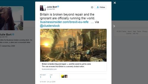 The UK’s surprising decision to exit the European Union brought out typical sneering from journalists, as well as warnings that the decision would bring doom and gloom to the country. Business Insider Finance Editor Lianna Brinded warned Britain was “beyond repair,” and the worst was “yet to come.”
