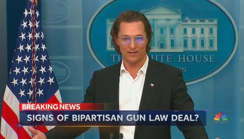 On Tuesday, Hollywood actor Matthew McConaughey took to the White House podium to plead for Congress to pass stricter gun control laws in the aftermath of the mass shootings in Buffalo and Uvalde. As per their usual arrangement, the evening news broadcasts were more than happy to act as stenographers for the leftist agenda.