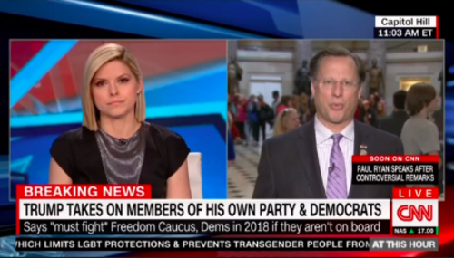 On Thursday's At This Hour With Kate Bolduan, Virginia Representative Dave Brat called out CNN and the rest of the media. In an interview about last Friday's failure to repeal and replace ObamaCare in the House, the Republican congressman and House Freedom Caucus (HFC) member ruled that "It's always the mainstream media, et cetera, likes to hit conservatives."