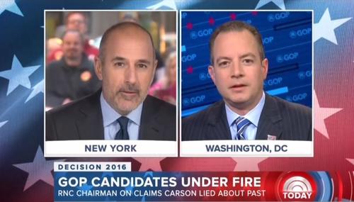 During an interview with NBC Today co-host Matt Lauer on Monday, Republican National Committee chairman Reince Priebus denounced the “crazy obsession” of the media over alleged inaccuracies in Ben Carson’s biography and pointed out a glaring double standard: “The fact is, you know, we kind of wish the media would be just as obsessed or half obsessed with Hillary Clinton's lies of many years and…