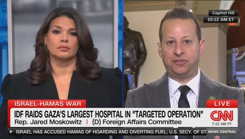 Democratic Rep. Jared Moskowitz joined the Wednesday edition of CNN News Central and condemned the network for repeating Hamas propaganda on the Al-Shifa Hospital when it cited Hamas saying there is no command center at the facility.