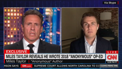 CNN contributor and former administration bureaucrat Miles Taylor revealed Wednesday that he was the so-called “senior administration official” who wrote an op-ed for The New York Times in 2018 with many unsubstantiated accusations against President Trump. CNN’s Chris Cuomo managed to snag Taylor’s first interview since coming out and that too was filled with unsupported…
