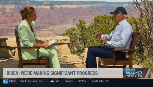 While in Arizona at The Grand Canyon, President Biden granted a rare interview to The Weather Channel and meteorologist Stephanie Abrams for Wednesday’s America’s Morning Headquarters. Abrams used her opportunity to lob some softballs Biden’s way as well as to push him further to the left on environmental issues.