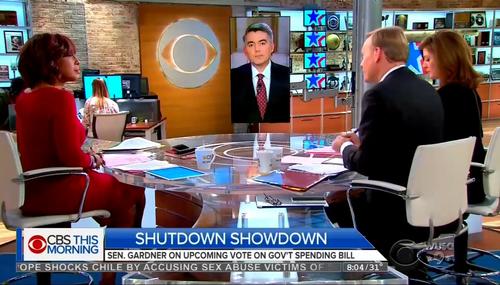 CBS This Morning co-host John Dickerson on Friday touted Democratic talking points regarding a government shutdown. Talking to Senator Cory Gardner, Dickerson tried to explain away demanding a DACA fix in return for keeping the government open. He lectured the Republican: "And nothing focuses the mind like a hanging.”