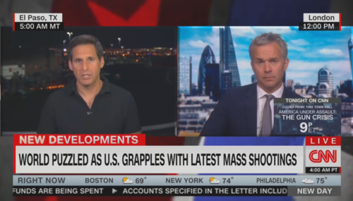 When it comes to guns, the United States really needs to take lessons from the rest of the world. From enlightened, low-crime countries. You know: like Mexico. And Venezuela. That was the thrust of a hand-wringing CNN segment this morning. Narrated by Brit CNN correspondent Nick Paton Walsh, the chyron set the tone: "World Puzzled as U.S. Grapples with Latest Mass Shootings."