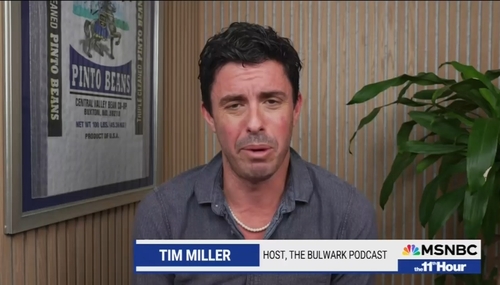On Thursday night’s episode of MSNBC’s The 11th Hour, Stephanie Ruhle hosted a panel including Tim Miller of The Bulwark podcast, NBC senior national politics reporter Jonathan Allen, and New York Times chief White House correspondent Peter Baker. Ostensibly the topic of discussion was Wednesday night’s mid-air crash at Reagan National Airport, in which all…