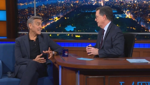 Actor George Clooney traveled over to CBS and The Late Show with Stephen Colbert on Tuesday to promote the stage adaptation of his 2005 movie Good Night, and Good Luck about Edward R. Murrow and McCarthyism. With modern-day politics an obvious backdrop, Clooney urged journalists to be on the “right side of history” even if it “is not fun at the moment.”
