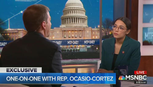 Already a biased journalist on the environment based on his December 30 Meet the Press stunt, MTP Daily host Chuck Todd brought on socialist Congresswoman Alexandria Ocasio-Cortez (D-NY) for Thursday’s show to discuss how she views the 2020 field, the Green New Deal, and socialism. Not surprisingly, he operated on her turf and didn’t pressure her on any of the outlandish, Soviet-style proposals…