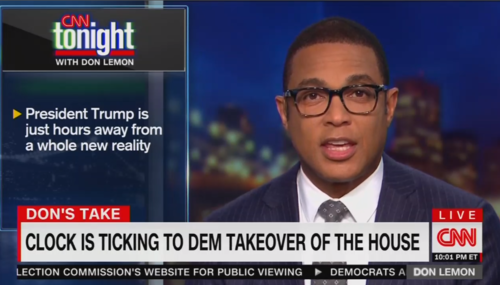 Fresh from his drunken New Year’s Eve bender with colleague Brooke Baldwin, CNN Tonight host Don Lemon was excitedly looking forward to California Representative Nancy Pelosi becoming Speaker of the House on Thursday. During his Wednesday night show, he boasted about how “Democrats are salivating at the idea that they could eat [President Trump’s] lunch”, and flaunted his own salivation.
