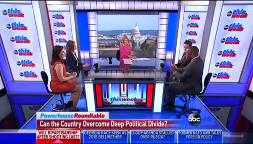 Following the shooting of Congressman Steve Scalise and the others present at the Republican baseball practice, there was a notable dearth of the gun-control pushing by the Big Three Networks. That fact was also picked up by ABC’s Martha Raddatz, who questioned her panel about why that was during This Week on Sunday. “Do you think that had to do with the fact that you had the capitol police…