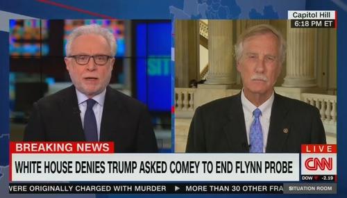 During Tuesday’s Situation Room, CNN host Wolf Blitzer repeatedly nudged guests to accept the notion of impeaching President Donald Trump following a New York Times piece claiming that Trump told then-FBI Director James Comey in February to end the Mike Flynn probe.