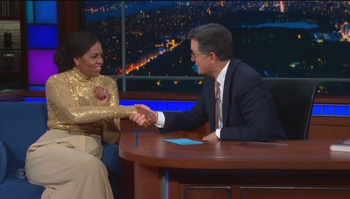 Colbert Quizzes Michelle Obama On Sandwiches, Smells, Other Softballs