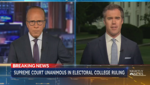 As a Media Research Center study exposed last week, the broadcast networks had a sleazy habit of extolling Supreme Court victories for liberals and ignoring wins for conservatives. Well, they were back at it again on Monday after all nine justices supported a state’s right to punish so-called “faithless electors” in the Electoral College who don’t vote in accordance with their state’s popular…