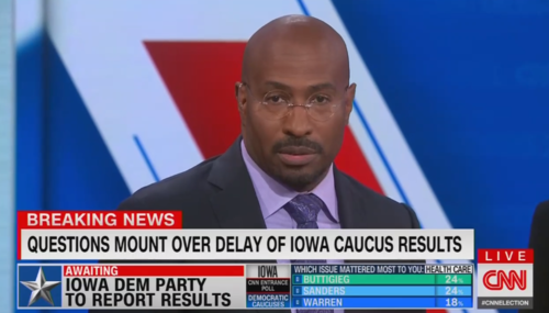 It’s past midnight and there’s still no official results from the Iowa caucuses and rumors said results wouldn’t be published until the morning. CNN’s patience wore wearing thin late in the 10:00 p.m. hour when their frustrations flashed. They were so desperate for numbers that host and liberal activist Van Jones began reading unverified numbers an apparent caucus secretary had released on…