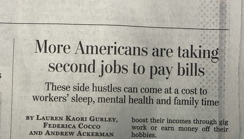 NOW? WashPost Admits Americans 'Taking Second Jobs to Pay Bills'