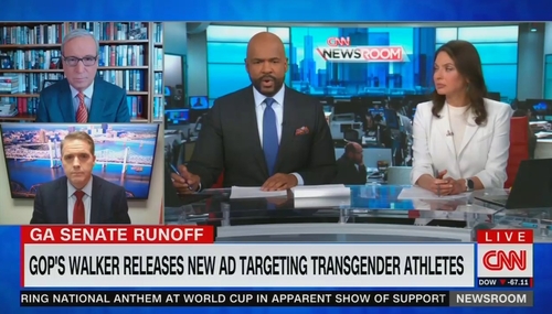 On Monday afternoon’s CNN Newsroom, things briefly took a bizarre and sinister turn when the supposedly down-the-middle network tied Georgia Republican senatorial candidate Herschel Walker to the deadly mass shooting at a Colorado Springs LGBTQ nightclub. The reason? Well, he released an ad on Monday with former NCAA All-American Riley Gaines denouncing transgender athletes competing…