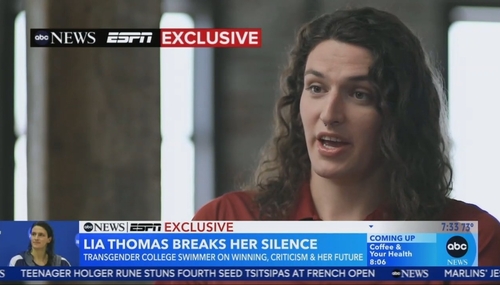 On Monday, Good Morning America aired their delayed ABC News/ESPN exclusive interview with transgender swimmer Lia Thomas, who switched genders and crushed actual female swimmers to win an NCAA Division I Swimming title. And, as predicted, the Disney-owned channel largely laid it on thick for Thomas.