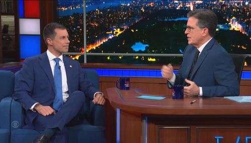 CBS’s Stephen Colbert continued his holy war against Speaker Mike Johnson on the Thursday edition of The Late Show when he welcomed Transportation Secretary Pete Buttigieg and wondered how he could possibly deal with the “awful” new Speaker.
