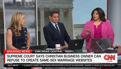 CNN News Central reacted to the Supreme Court’s Friday ruling in 303 Creative LLC v. Elenis that upheld the First Amendment right to not be compelled to create a website for a same-sex wedding by raising hysterical hypotheticals about the return of Jim Crow. The assembled cast was also greatly confused by the difference between a gay individual and their wedding.