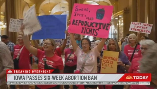 On Wednesday, NBC’s Today was beside itself as the Iowa legislature approved a six-week limit on abortions with exceptions for rape, incest, and the life of the mother, so NBC naturally threw a pit party for Hawkeye State baby killers in, bemoaning the new “battle lines” and “intense debate” resulting from the move.