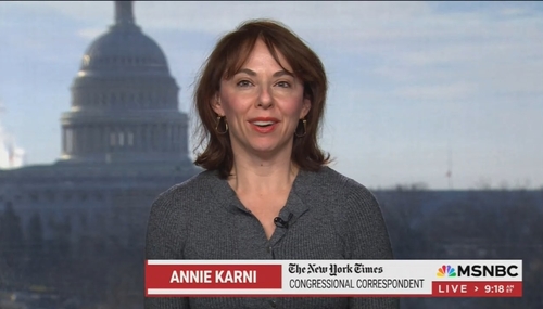 New York Times House GOP-beat reporter (and frequent MSNBC presence) Annie Karni took the most cynical possible view of House Republicans attempt to protect women from men competing against them in sports in Wednesday’s edition, “Democrats Block Measure on Transgender Girls and Sports.” By contrast, the filibustering Democrats who apparently want biological males to invade female…