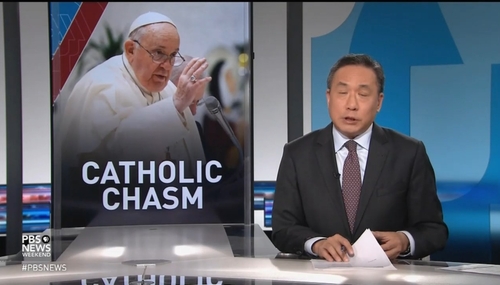 Slot him into the media’s “Strange New Respect for Religion” category: Pope Francis, beloved by liberals for his “progressive” tack toward the LGBTQ movement -- and hostility toward conservative Catholics. PBS Weekend was the latest to genuflect toward the “social reform” minded (i.e. liberal-pleasing) pontiff on Saturday.