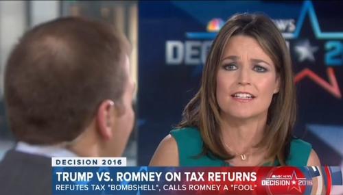 Displaying a stunning double standard on Thursday’s NBC Today, host Savannah Guthrie immediately dismissed 2012 Republican nominee Mitt Romney calling for the release of Donald Trump’s tax returns: “Donald Trump has been very clear, I mean when he was sitting right here, he said, ‘I pay low taxes because I don't want to pay high taxes.’ Is there a bombshell there? Does it matter for Trump? Who…