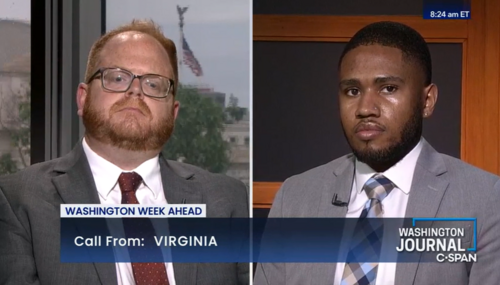 Under stern questioning from a caller about the media obsession with Russian collusion on C-SPAN's Washington Journal on Tuesday, USA Today White House correspondent Joey Garrison and Bloomberg congressional reporter Jarrell Dillard insisted they try to hold all politicians accountable and don't have biased double standards.