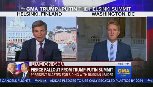 As ABC’s Good Morning America continued spinning outrage over President Trump’s summit yesterday with Vladimir Putin, anchor George Stephanopoulos turned to anti-Trump Republican Jeff Flake for solutions on how to stop Trump.