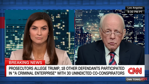 John Dean appeared on CNN to perform his utterly predictable "bigger than Watergate" shtick in reference to Donald Trump's indictment in Fulton County, Georgia.