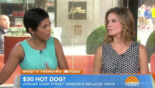 On Wednesday’s NBC Today, co-host Tamron Hall stumbled upon conservative economic philosophy as she defended a hot dog vendor’s right to charge customers whatever he wanted, even if it was overpriced: “But why can’t he set his own prices? I mean, if a restaurant sells their hot dog, steak, or whatever for the price they want, why is his price regulated?”