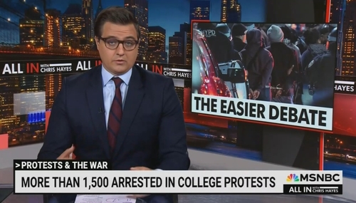 MSNBC hosts Chris Hayes and Alex Wagner used their respective Wednesday editions of All In and Alex Wagner Tonight to attack those who called in the police to end the illegal encampments and occupations on college campuses by claiming it was they who were escalating tensions and to prove their point, they pointed to those schools that surrendered to the mob.