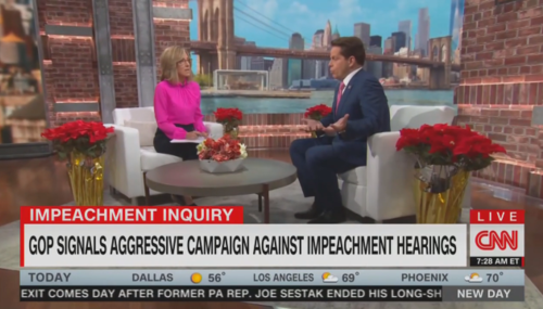 On CNN’s New Day Friday, co-hosts Alisyn Camerota and John Avlon brought on former Clinton White House Press Secretary Joe Lockhart to praise how his former boss behaved during his impeachment process, as compared to President Trump. The liberal journalists also griped that Republicans were too partisan to get on board with impeachment, something that could’ve been said about the liberal media in…