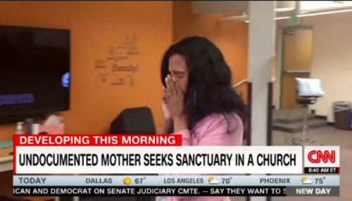 On Thursday, CNN's New Day sympathetically profiled an illegal immigrant mother of four who has been taking shelter in a Colorado church to avoid deportation. "She was, at first, speechless, then in tears, her nightmare coming true," said CNN reporter Ana Cabrera. However, the report failed to mention that such deportations also occurred under the Obama administration.