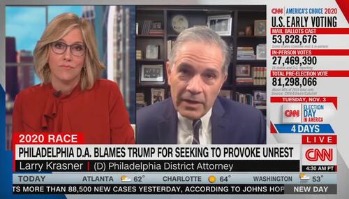 It has become a common narrative for CNN to wildly claim, without evidence, that President Trump is trying to steal this election. On Friday’s New Day, co-host Alisyn Camerota eagerly brought on Philadelphia D.A. Larry Krasner to promote the same unhinged talking point and even threaten to imprison the President’s supporters.