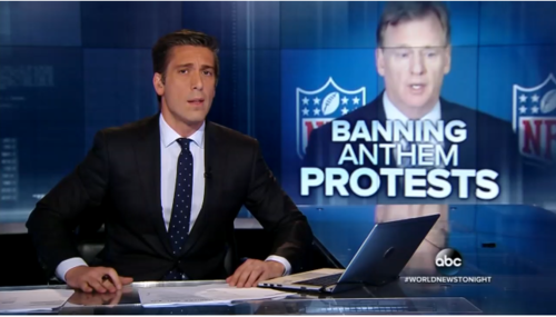 When it came to reporting the policy change that evening, ABC and NBC appeared put off by the development. They both seemed to suggest that players kneeling wasn’t unpopular with fans until President Trump spoke out and pushed the inaccurate claim the players weren’t consulted. And neither spoke with players supportive of the decision.