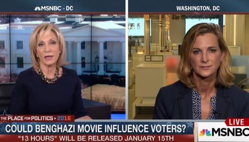 On her MSNBC show on Monday, host Andrea Mitchell derided the film 13 Hours, opening in theaters nationwide on Friday: “That new film about Benghazi coming out this week could give wider circulation to conspiracy theories, despite denials, that CIA operatives were told to stand down and not rescue four Americans, including an ambassador, who died in that assault.”
