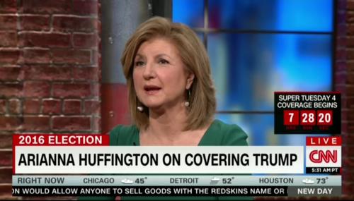 Appearing as a guest on Tuesday's New Day on CNN to plug her book, The Sleep Revolution, Arianna Huffington of the Huffington Post defended the Post's over-the-top coverage hitting GOP presidential candidate Donald Trump.