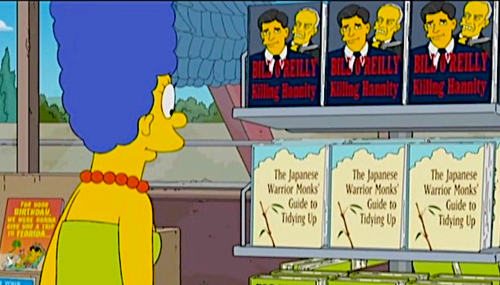 For the second time this season, Bill O'Reilly is a topic of ridicule on The Simpsons. This time, Bill gets some free press for his Killing book series (Killing Jesus, Reagan, Lincoln, Kennedy, etc.), but at the expense of a fellow conservative, natch.