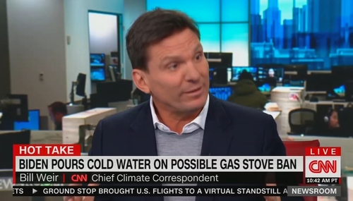 CNN climate correspondent Bill Weir offered up a strange analogy on multiple Wednesday installments of CNN Newsroom when discussing the possibility of a ban on gas stoves. As Weir tells it, having a gas stove, particularly in small apartments, is akin to an idling car.