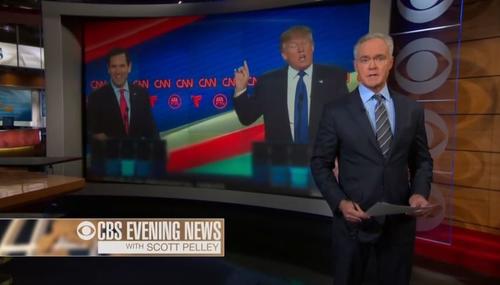 Pretending to show compassion and interest in the future of conservatism and the Republican Party, Friday’s CBS Evening News and anchor Scott Pelley lectured Marco Rubio for triggering “a crippling civil war” by attacking Donald Trump in Thursday’s debate that “reached lows that many Republicans would say are beneath the dignity of the office that the candidates are seeking.”