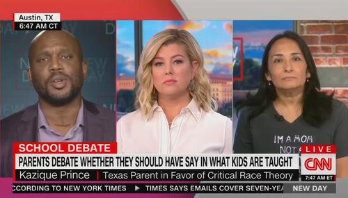A CNN host refused to acknowledge her guest’s evidence of Critical Race Theory in Virginia schools today, resorting to repeating, “it’s not part of the curriculum” like a broken record.