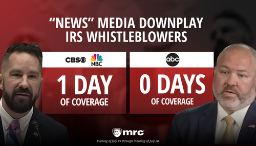 On their July 19 evening shows and July 20 morning shows CBS and NBC actually covered the IRS whisteblower congressional testimony for a total of 11 minutes, 13 seconds — and then immediately dropped it. The last mention came on their July 20 morning shows.